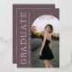 This plum photo graduation announcement features timeless serif typography paired with a modern, editorial layout for a rich and sophisticated look. Soft ivory lettering and rose gold foil accents highlight the graduate’s name, class year, and school while allowing the main photo to remain the focal point. Fully customizable, this design lets you personalize all text details and upload your own image on the front. The coordinating back includes a matching plum background with a four-photo collage template, perfect for additional senior portraits. A refined graduation announcement designed for those who love deep purple jewel tones, classic design, and elevated modern styling. © Kimbellished, LLC