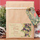 A vintage style label for jams and jellies with an illustration of purple plums on a branch with green leaves, made from an old postcard painting, with brown coloured scrolls and text. The date can be left for writing the date, or change the dotted text to the year you require.