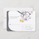 Plum Purple Tree Yellow and Grey Lovebird Swirl Wedding RSVP Invitations