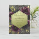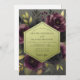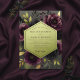Rich plum blooms and deep green foliage create a dramatic and romantic atmosphere. Accents of metallic gold foliage add a touch of opulent sophistication. This design evokes a dark, enchanted feel perfect for a moody, botanical celebration.