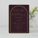 Send out this beautiful gold foil wedding invitation in Plum Noir Purple, with a gold arch and gold sparkles throughout the card.