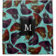 Beautiful swarm of deep purple, teal, orange, and yellow butterflies with custom background accent colouring. The black centre decorative square features a white monogram letter in the centre.