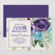 Plum Purple Blue Watercolor Floral 100th Birthday Invitation