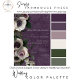 This exquisite wedding invitation design features a captivating spray of pale lavender, white, green, and pale pink anemones and roses, artfully arranged against a luxurious dark plum purple background with a soft marbleised effect. The clean, modern white typography adds a touch of elegance, making this invitation the perfect choice for a romantic and sophisticated wedding. Created by Simply Farmhouse Press.