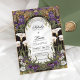 Elegant white calla lilies are surrounded by rich plum purple blooms and soft greenery in this ornate Art Nouveau wedding invitation. The deep, romantic tones and intricate floral border create a timeless design perfect for couples who want their celebration to feel both sophisticated and unforgettable. Feel free to reach out if you need additional coordinating items or have any questions, I'd be happy to help.