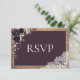 Plum Purple Floral Lace Wood Wedding RSVP Card
