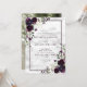 Create the perfect wedding invitation with this trendy design featuring plum purple and eucalyptus floral botanical elements, plum purple frame and faux carrera marble background. The back of the invitation features your favourite engagement photo. Copyright Elegant Invites, all rights reserved.
