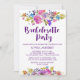 This plum purple garden bachelorette party invitation is perfect for a floral theme party. The design features bright magenta, pink, plum purple and blue flowers, and a lovely bold script font. Personalise the floral wreath backing with the name of the bride-to-be.