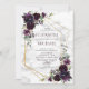 Plum Purple Geometric Marble Floral Photo Wedding Invitation