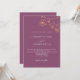 A modern, elegant and minimalist wedding invitation. Plum, purple coloured background decorated with faux gold florals. Personalise and add your names and wedding details.