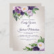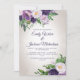 Beautiful plum purple and soft lavender watercolor floral and greenery on a botanical wedding invitation. Contact us for help with customisation or matching products. The names of the bride and groom are in an elegant script font.