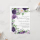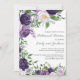 Elegant plum purple and soft lavender floral and greenery wedding rehearsal dinner invitation. Contact us for help with customisation or matching products. The names of the bride and groom are in an elegant script font.