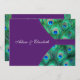 Elegant emerald green, royal blue and teal peacock feathers wedding invitation. Customise with your choice of font style and font colour.
