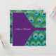 Elegant purple emerald green, royal blue and teal peacock feathers square wedding invitation. Purple peacock wedding invitations. Customise with your choice of font style and font colour.