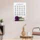 This beautiful 25 table wedding seating chart includes table assignments for 250 guests at the traditional 10 seats per table. The design is romantic and elegant with a single long-stemmed plum purple or eggplant coloured rose reflecting in a pool of water with waves and ripples. The title reads: Please find your table, and is written in fancy script calligraphy. There is space for the names of the couple and the wedding date below. Wonderful way to help your guests find their seats while adding a touch of elegance to your wedding reception.