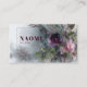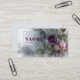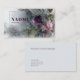 Define your brand with the ethereal drama and artistic elegance of a secret garden using this captivating business card. The design is dominated by an opulent cluster of velvety roses and wild foliage in a sophisticated, muted palette. The focal points are large blooms in deep plum purple and soft, dusty pink mauve, which contrast beautifully against the misty, dark blue-gray background. This background features a ghostly woodland or misty garden scene with subtle, sparkling light effects. A thin, clean metallic gold rectangular frame highlights the clear, central area, providing a refined space for your information. This artwork beautifully merges the quiet mystery of a hidden garden with the rich, romantic drama of dark florals, resulting in a unique and sophisticated brand statement. This business card is ideally suited for a high-end independent perfumer promoting deep, complex, atmospheric scents, a creative artist or illustrator specializing in fantasy or nature themes, or a luxury event stylist specializing in moody, ethereal celebrations. It would also perfectly suit a boutique hotelier wanting to convey a mystical, picturesque setting, or a vintage fashion curator whose collection is inspired by deep romance.