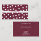 This elegant business card is perfect for any business or store. It features a plum red background with a white polkadot pattern on the top and bottom of the front. A white stripe runs through the centre. The back is a solid red. All text is customisable.