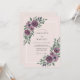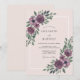 This design features a sophisticated palette of deep plum and muted mauve watercolors set against a soft blush backdrop. Elegant clusters of lush roses and delicate anemones are paired with sage green leafy foliage for a romantic aesthetic. The artwork evokes a sense of timeless elegance and natural beauty.