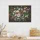 Floral poster featuring a photo of gorgeous blossoming plum tree branch on a dark green background. A touch of spring vibes to your home decor, an ideal seasonal gift for your loved ones. Get inspired and bring the freshness of nature into your life! You can delete the text "Make your whole year's plan in the spring and the whole day's plan in the morning" or replace it with your own message (click "Personalize this template").