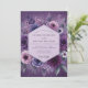 An enchanting floral arrangement blossoms against a deep purple background, creating a moody and romantic atmosphere. This elegant design features a rich palette of plum, amethyst, and dusty blue. Painterly roses and anemones are accented by delicate white blossoms and dark foliage, composing a beautifully opulent botanical display for your nuptials.