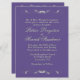 Silver scroll with matching text. This is a popular colour is called Ultraviolet and this solid simple look is nice for an evening or winter wedding. Put the first names of the Bride and Groom on one side giving your invitations a less formal feel. On the other side the pertinent wedding information adds a classic flair. You can easily change the text. If you need any help or would like something different please message me. I am available for requests. When doing your invitations triple check all your spelling and dates.