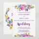 This plum wedding invitation card with monogram backing is perfect for a floral theme wedding. The design features bright magenta, pink, plum purple and blue flowers, and a lovely bold script font. Personalise the front with your wedding details. Personalise the floral wreath backing with the initials of the bride and groom.