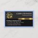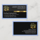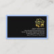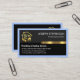 Overleaf, the same design theme is used with card details on the right. On the top is the gold logo followed by your prestigious name, contact details and a slogan caption option.