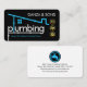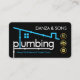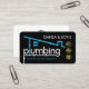 At the top lies the business name alongside a set of gold plumbing icons. Near the base you have a slogan caption which you can change in blue.