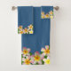 Elegant Frangipani plumeria flowers on award blue Bath Towel Set. Frangipani Flowers stand for beauty, perfect love and loyalty.