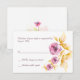 A coordinating reply card with three delicate, watercolor flowers in shades of plum and pink with golden leaves.