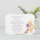 An enchanting invitation with three delicate, watercolor flowers in shades of plum and pink with golden leaves. Featured on Linen Paper with Bracket Shape. Want to save money? Print this invitation of the Basic Paper and Basic Square Corner Shape.