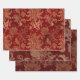 Plush Burgundy Red and Gold Damask Wrapping Paper Sheet