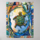 Brother turtle moves across the wetlands on his journey, bordered by symbols of nature. From the Children of the Earth series by P. Allingham Carlson. Poster.