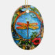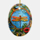 Dragonfly 2 - One of the Children of the Earth watercolors, A red dragonfly sparks over a turquoise pond, celebrating the colours of summer with joy. Holiday ornament.
