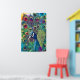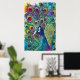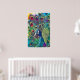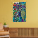 With a flourish, the peacock displays his magnificent tail feathers in all the tones of precious jewels. A watercolor painting of a brilliant bird.Poster.