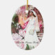 Fairest of them all, Kate, the princess bride stands upon a stone stair as regal and lovely as a dream of Springtime. Wearing her lace trimmed bridal gown, she raises her hand in welcome to the people of her kingdom as they surround her with flowers.Original watercolor painting by P. Allingham Carlson. Ornament.