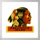 Vintage luggage label image for Pocatello, Idaho with a Native American portrait.