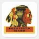 Vintage luggage label image for Pocatello, Idaho with a Native American portrait.