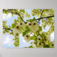 Poster with photo of white blossom of the paper handkerchief tree (davidia involucrata).