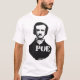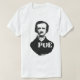 This T-shirt design features a large portrait of Edgar Allen Poe in a stenciled style with Poe's signature on the back.
