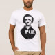 A shirt design featuring a portrait of Edgar Allan Poe in a stenciled design and Poe's signature on the back.