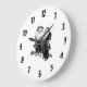 This wall clock features a 9th century Chinese poet and his sidekick in black and white. Han Shan, also known as Cold Mountain, stands with Pickup as they contemplate the universe. The numbers can be removed if a simpler design is preferred.
