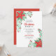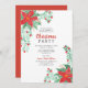Rustic christmas holiday party invitation, featuring watercolor red poinsettia flowers, foliage, delicate green folaige and red berries. The background is created using transparent overlay circles creating a wintery snowy affect and a modern template that is easy to customise.