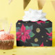 A festive elegant hand-drawn poinsettia floral pattern on black background drawn with coloured pencils surrounded by gold glitter circles.