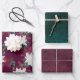 Poinsettia Burgundy and Teal Winter Holiday Floral Wrapping Paper Sheet