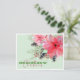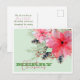 A watercolor style holiday floral arrangement featuring poinsettias and pine cones decorates the front of this pretty Christmas post card. "Merry Christmas" is written in a combination of block style letters and modern calligraphy for a contemporary look. The letters seem to sparkle with faux green and pink glitter. The back of the post card includes a small coordinating floral spray along with a holiday greeting and your personalised signature. Simplify your holiday mailing this year with pre-signed post cards. Just add addresses amd stamps and they're ready to drop in the mail.