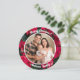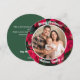 This lovely round poinsettia photo card is a different way to show off your family photo this holiday season. The poinsettia photo is vibrant and eye catching behind the customisable family photo and white words. The words on front and back are easy to customise, so you can create a Christmas card as unique as your family is!