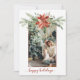 Beautiful red poinsettia with seasonal evergreens including holly and pine top your favourite photo in a red outlined frame. Room for another photo on the back. Personalise with your own messages front and back.