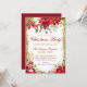 Modern Elegant Christmas Party Watercolor Poinsettia Floral Invitation - Gold Glitter Frame. Champagne Glass with Red Bow