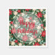 Happy Holidays or any message on napkins featuring stylish, red and ivory poinsettias, berries and leaves on dark green background. MATCHING items in our store.